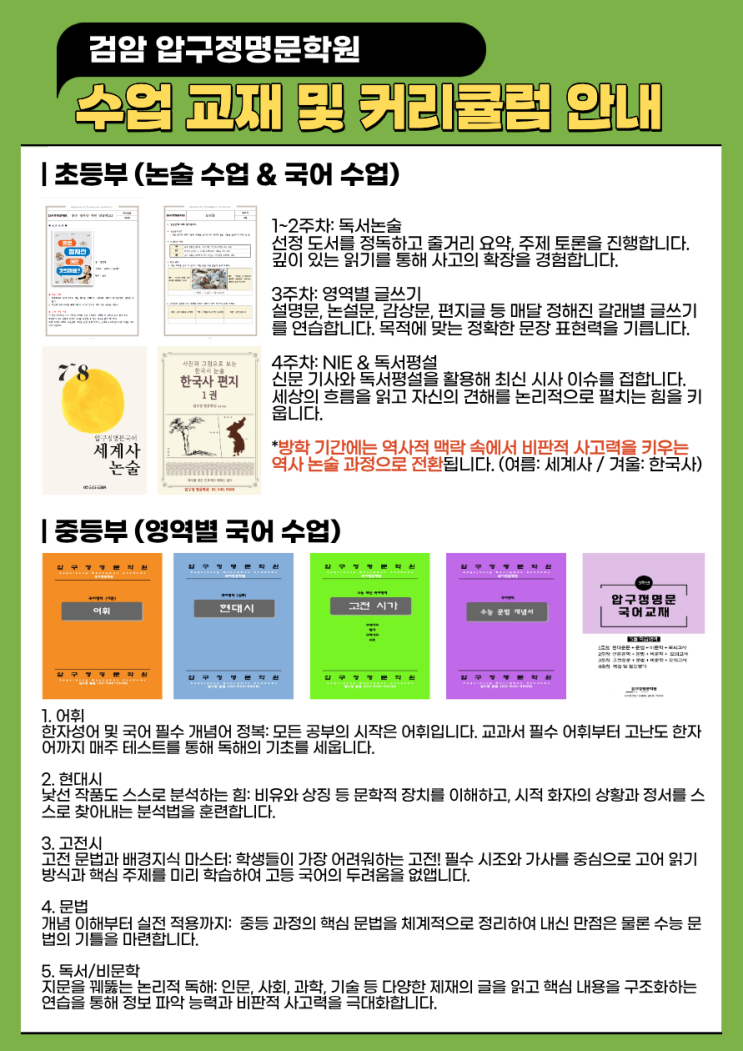 [검암직영원] 2026 3월 대개강 초등부 중등부 커리큘럼 안내