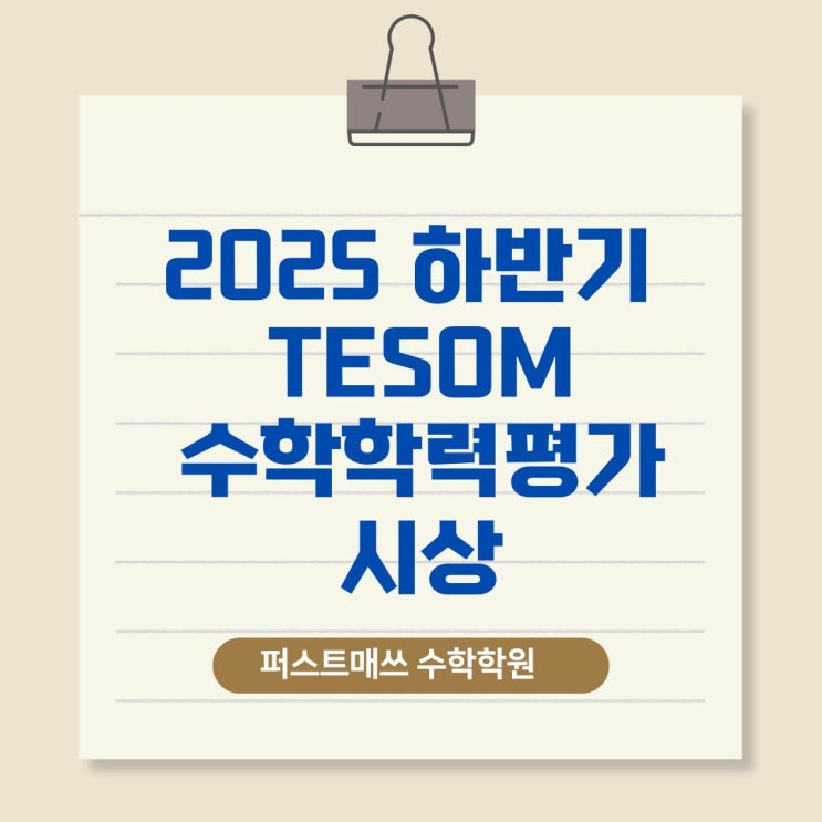 수학을 대하는 바른 태도와 더불어 깨닫는 기쁨을 통해 긍정적인 학습 정서를 갖게 하는 퍼스트매쓰 수학학원입니다. 드디어 지난 6월에 있었던 TESOM 수학학력평가 결과가 나왔습니다. 열심히 준비해서 시험을 치른만큼 우리 아이들도 결과를 무척 기다렸는데요. 열심히 공부한 우리 퍼스트매쓰 아이들 모두 좋은 성적을 거두었답니다. TESOM 수학학력평가는 2015년부터 11회차에 걸쳐 실시된 비상교육 수학학력 진단평가를 모태로, 2020년부터 새로운 평가목표를 가지고 진행되는 전국 단위 평가입니다. 대한민국 학생에 대한 무한 가능성! 우리 아이들의 즐거운 수학가능성 탐험! TESOM은 현재의 수학 실력을 정확하게 진단하고 앞으로의 로드....... <img src="https://blogthumb.pstatic.net/MjAyNTEyMTVfMTY3/MDAxNzY1Nzc3ODY2NTU5.f5_bYYS3LVUn-dhKWGyFb6GPt-ZNLfA-woP_2hFZbfog.M2rtBx930FAfGx9Wvpigj4dis1ChrxKfZbfLniAE1RIg.JPEG/%BA%A3%C0%CC%C1%F6%BB%F6_%BD%C9%C7%C3%C7%D1_%B3%EB%C6%AE_%BA%ED%B7%CE%B1%D7_%C4%AB%B5%E5%B4%BA%BD%BA_%BD%E6%B3%D7%C0%CF_%C0%CE%BD%BA%C5%B8%B1%D7%B7%A5_%C6%F7%BD%BA%C6%AE.jpg?type=s3" />