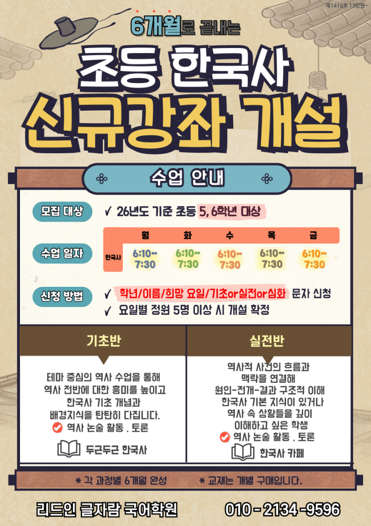 [ 탕정 ] 초등 한국사 기초반 / 실전반 운영