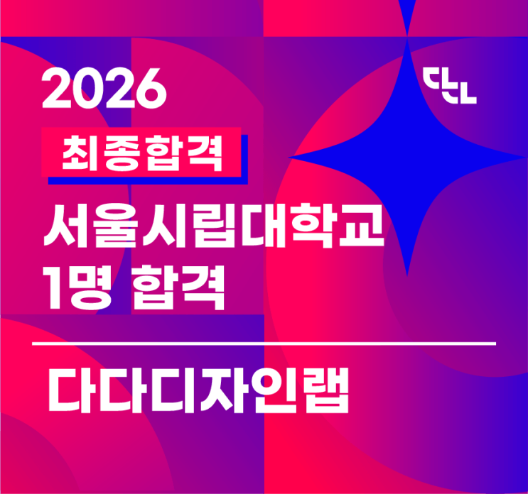 안녕하세요:) 인서울미대편입, 디자인대학원 전문학원 다다디자인랩입니다. 이번에는 인서울미대편입에서 묵직한 소식을 전해드립니다. ✨인서울미대편입에서 서울시립대학교 시각디자인학전공 일반편입 1명 모집에 다다디자인랩 최초합격✨ 그 한 자리를 저희 다다디자인랩 학생이 가져왔습니다. 1명 모집, 그 안에 들어간다는 것 서울시립대학교 시각디자인학전공 일반편입은 모집 인원이 매우 적고, 실기 완성도와 조형 감각을 동시에 요구하는 전형입니다. 1명을 뽑는 시험은 "잘 본 학생"이 아니라 "가장 기준에 맞는 한 명"을 선발합니다. 이번 최초합격은 단순 합격이 아니라 평가 기준 안에서 가장 높은 설득력....... <img src="https://blogthumb.pstatic.net/MjAyNjAyMTlfODEg/MDAxNzcxNDgwODk1Njky.7cqKDkKj7WjzRlq3Dil9VINaLwtcWJQMjAFhJujTYFEg.P4098yJ1JAy_BLxKniHRHsO0YMv277Q1n1Ys60xI3vsg.PNG/Asset_2153x-8.png?type=s3" />