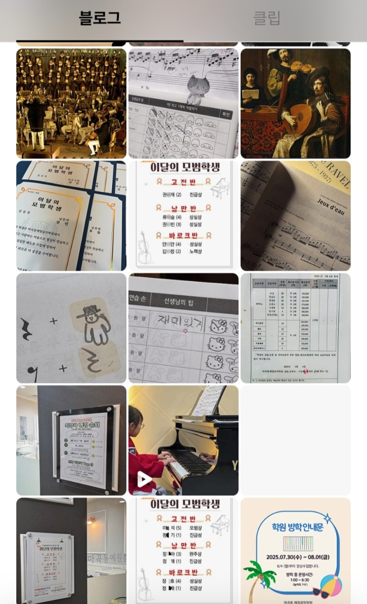 여러분 안녕하세요 ! 마곡동예원음악학원 이에요. ( 마곡예원음악학원 마곡동예원피아노 마곡예원피아노 • • 아님 xx 마곡동예원음악학원 임! 유사 상호명 주의..❗️ ) 지난주에 연말결산으로 상반기를 돌아보았던 거 기억하시죠? 오늘은 남은 하반기를 들고 왔어요. 하반기는 상반기보다 그리 오래 지나지 않아서인지 블로그 포스팅 준비하면서 비교적 기억이 새록새록 잘 떠올랐네요. 그럼 하반기(7~12월)엔 어떤 일들이 있었는지 키워드로 같이 알아보아요. 렛츠 고 -* 예원 하반기 결산 7월 <블로그> 7월의 키워드는 블로그 입니다 ! 포스팅 거의 없이 방치되었던 저희 마곡동예원 블로그를 올 7월부터 꾸준하게 관리하기....... <img src="https://blogthumb.pstatic.net/MjAyNTEyMThfMTA5/MDAxNzY2MDMzOTAwNzM1.EW8TYJxYLrZZz7bkH5npmVPiDymUVMKRrU7qzK-hvMQg.DKZ7Bh9OELmB3M_mZEAxL7Jkf_OXV9IHWQPLlks5hpwg.JPEG/900%A3%DFScreenshot%A3%DF20251218%A3%DF135655%A3%DFNaver_Blog.jpg?type=s3" />