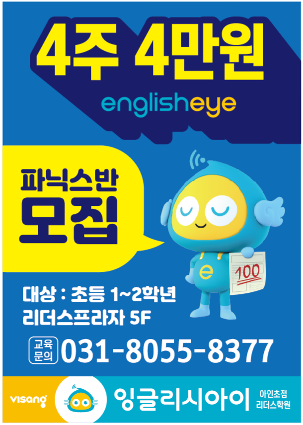 안녕하세요! 잉글리시아이에서 2026년 신학기를 맞이하여 신규 회원을 위한 선물 이벤트를 준비하였습니다 새 학기, 새 시작! 잉글리시아이와 함께 영어 실력을 향상시켜보세요! 잉글리시아이는 1,400여개 스토리 영상으로 살아있는 진짜 영어를 경험하고 차세대 시스템 AI-QV로 자연스러운 영어 말하기를 시작합니다. 잉글리시아이에 등록하는 모든 아이들이 영어를 친숙하게 느끼면서 재미있게 할 수 있는 방법은 먼저 파닉스와 만나는 것입니다^^ 2동탄 청계동 영어학원 비상잉글리시아이에서 초등학교 1~2학년 학생들을 대상으로 4주 4만원 파닉스 반을 모집합니다 새학기를 맞이하여 4주 4만원 파닉스 반을 통해 영어에 재미를 느끼게 해주....... <img src="https://blogthumb.pstatic.net/MjAyNjAyMjNfMTA3/MDAxNzcxODI1NTcxNDc2.Oy1ORw2uHjk4rgVsvuda3G4E4wdKgB5AVDds5gQNGZQg.7R5K-LWg-VU3xDnMRFAiJWdgQf6z7P86h9sofRFGKC8g.PNG/IMG%A3%DF5137.PNG?type=s3" />