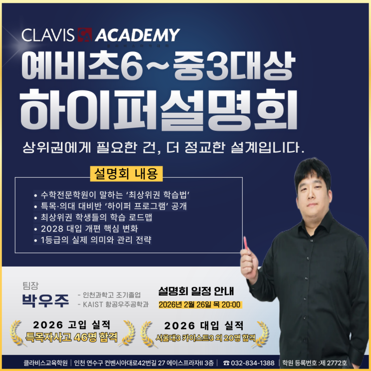 [송도 수학 전문 학원] 2026 고입 실적 특목·자사고 46명ㅣ서울대3명ㅣ카이스트 3명... 외 20명ㅣ최상위 하이퍼 간담회 신청하세요.