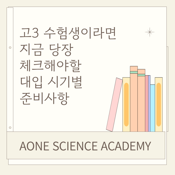 고3 수험생이라면 지금 당장 체크해야 할 대입 시기별 준비사항 고3 새 학기가 시작되었습니다. 이제부터 수능까지는 단 한 주도 허투루 보낼 수 없는 시간입니다. 대입은 아는 만큼 보이고, 보이는 만큼 준비할 수 있습니다. 오늘은 2026학년도 대입 일정에 맞춰 시기별로 반드시 점검해야 할 사항들을 정리해 드립니다. 3월 모의고사 – 현재 위치 파악의 출발점 3월 24일(화) 고3 첫 모의고사가 실시됩니다. 이 시험은 겨울방학 동안의 학습 결과가 처음으로 드러나는 자리입니다. 다만 재학생만 응시하기 때문에 재수생과 비교한 실제 위치를 가늠하기는 어렵습니다. 따라서 3월 결과를 전형 선택의 최종 기준으로 삼기보다는 자신의 강약점....... <img src="https://blogthumb.pstatic.net/MjAyNjAzMTRfMjM3/MDAxNzczNDUzMjA3ODky.FO2bmePwdGH9YMQu4JgCKRfotW7QSRjpUdswNbbhivog.o7R_WAI6-bGWrmtUXOmr-rpXddkGObcnv9MLcmLHAH4g.PNG/%3F%A0%9C%EB%AA%A9%EC%9D%84_%3F%9E%85%3F%A0%A5%3F%95%B4%EC%A3%BC%EC%84%B8%3F%9A%94___%EB%B3%B5%EC%82%AC%EB%B3%3F-001.png?type=s3" />