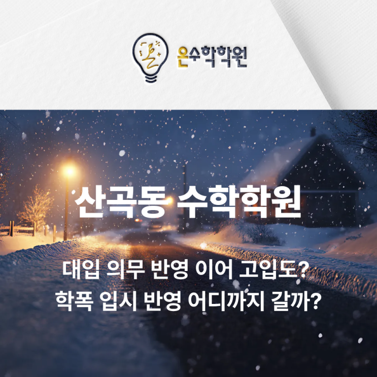 산곡동 수학의 '결정적 차이'를 만듭니다. #부평수학전문 #산곡동수학전문 #온수학학원 네이버 지도에서 온수학학원 검색 후 저장하시면 찾아오기 편합니다. 안녕하세요. 부평구 산곡동 수학 전문 온수학학원입니다. 2026학년도 대입부터 학교폭력 조치사항이 의무적으로 반영되고 있습니다. 그런데 최근 기사에서는 영재고와 일부 상위권 고교 입시에서도 학폭 사항이 반영되고 있다는 보도가 나왔습니다. 단순한 이슈일까요? 대입에 이어 고입까지 영향이 확대되는 흐름일까요? 이미 시작된 변화 - 영재학교 반영 확대 현재 전국 영재학교 다수가 입시에 학교폭력 관련 사항을 반영하고 있는 것으로 알려져 있습니다. 기사에 따르면....... <img src="https://blogthumb.pstatic.net/MjAyNjAyMjRfNTIg/MDAxNzcxOTE2MzIyMjY2._BZFBEp3tgjHt5KjqIRr8pgNNtbUIUwYQQ3o2ZAg-2Qg.Ny0dWF2gSFPxyyeWjVED5z2XGYUPKe9HoFcXbnuz_Bog.PNG/1.png?type=s3" />