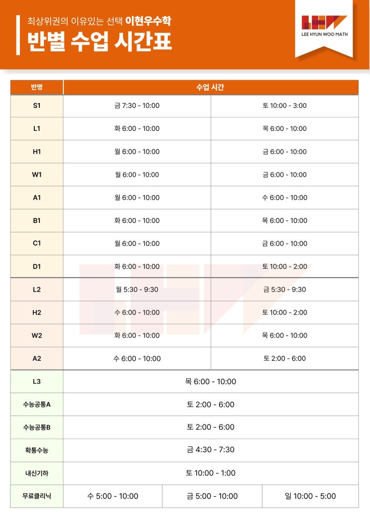 안녕하세요. 최상위권의 이유 있는 선택, 이현우수학입니다. 어느덧 매서운 추위가 지나가고, 새로운 시작을 알리는 3월 신학기가 다가오고 있습니다. 새 학년으로 올라가는 우리 학생들, 그 리고 이를 지켜보시는 학부모님들 모두 설렘과 동시에 내신과 수능 대비에 대한 긴장감을 안고 계실 텐데요. 새로운 학년, 첫 단추를 어떻게 꿰느냐가 1년의 성적, 나아가 입시의 성공을 좌우합니다. 저희 이현우수학은 학생들이 흔들림 없이 수학적 역량을 끌어올릴 수 있도록 만반의 준비를 마치고 2026년 3월 신학기 시간표 및 학습 시스템을 안내해 드립니다. 성적이 오를 수밖에 없는 '이현우수학'의 완벽한 수업 구조 방학 동안 진....... <img src="https://blogthumb.pstatic.net/MjAyNjAyMjFfNjMg/MDAxNzcxNjc0MjY0NDY1.48rpMEao14k0WRa60ILFAdQAKphPupVwFkoM-UuS-vgg.PFYATwh-LJuu5Iu4hCaEXFqsRgnJEy29CLpEk_ONgZMg.JPEG/KakaoTalk_20260220_180158979_02.jpg?type=s3" />