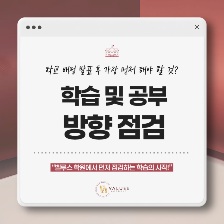 안녕하세요. 공부의 시작부터 끝까지 대입 마무리하는 그 순간까지 - 국·영·수 전문 맞춤 수업! 소수정예, 원장 직강으로 책임지는 목동 중등 종합학원 벨루스학원입니다. 오늘은 중·고등학교 배정 발표 이후 아이의 학습 방향을 점검해야 하는 이유와 그 시기에 부모와 학생이 놓치지 말아야 할 포인트를 전해드리려고 합니다. 중·고등학교 배정 발표가 나오는 날이면 아이보다 부모 마음이 먼저 복잡해집니다. “어디로 배정됐지?” “학교 분위기는 어떨까?” “수업은 따라갈 수 있을까?” 이처럼 기대와 걱정이 동시에 몰려오는 시기는 사실 아이의 새로운 출발선에 서는 순간입니다. 따라서 학교 이름이나 성적, 등급보다 중요한 것은....... <img src="https://blogthumb.pstatic.net/MjAyNjAyMTBfMTUz/MDAxNzcwNjk2OTgyODg0.V5a-p1DzSMZhzMJ2vJwO7NEFPQNrmJ1il0UzyLwaY_og.LAOwRpkkO2YIHxQpQZpfDsSEi8HvawdRKK7C8fJfRcog.PNG/%B8%F1%B5%BF_%C1%DF%B5%EE_%C1%BE%C7%D5%C7%D0%BF%F8-001_%285%29.png?type=s3" />