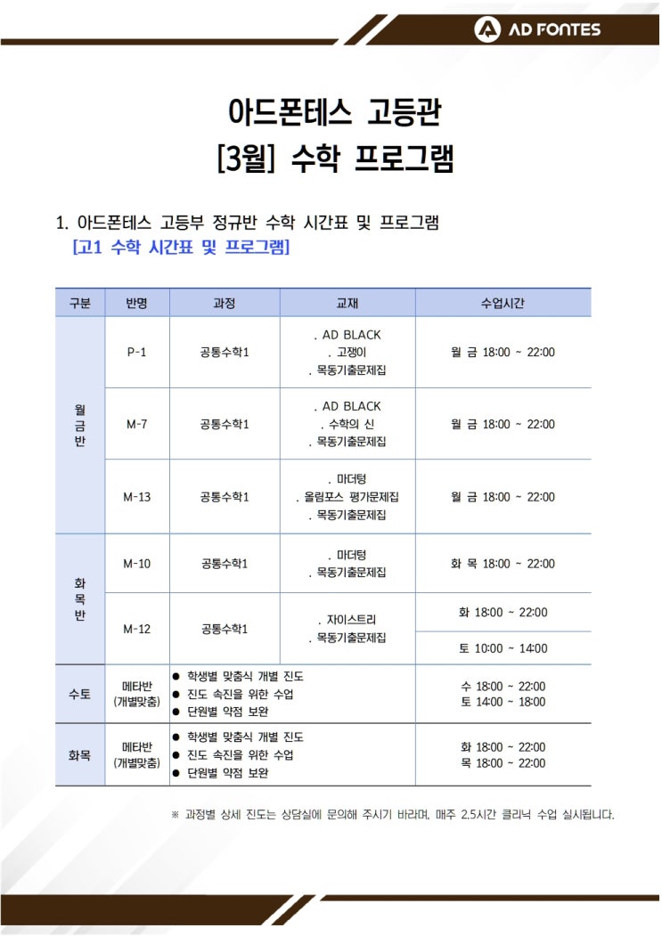 안녕하세요, 아드폰테스 고등수학입니다. 고등본관 3월 수업 프로그램입니다. 많은 관심과 문의 바랍니다. ☎ 02 - 2088 - 1230 입학 및 상담예약 ☞ https://url.kr/hur9jc <img src="https://blogthumb.pstatic.net/MjAyNjAyMTFfMTUx/MDAxNzcwNzg3OTAzMjcz.l6e1lMKK-2SuqKnOxO_UBsEveV8tFyAvHs_dS3yK3LYg.X6TPCUbfaD0K0HCdJMq8gMCp7jxq2z7510Y2l9COW8Yg.JPEG/%C7%C1%B7%CE%B1%D7%B7%A5_%BE%C8%B3%BB%B9%AE_3%BF%F9_-_%BA%BB%BF%F8_%B0%ED%B5%EE%B0%FC%282026%B3%E2%29001.jpg?type=s3" />