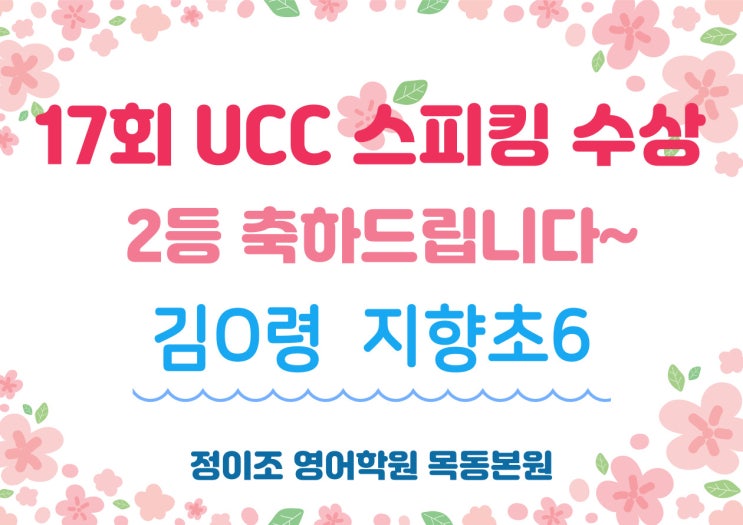 [목동 정이조 본원_초중등영어] ♡26년 17회 UCC Speaking 수상자♡ ☞ 축하드립니다~^^