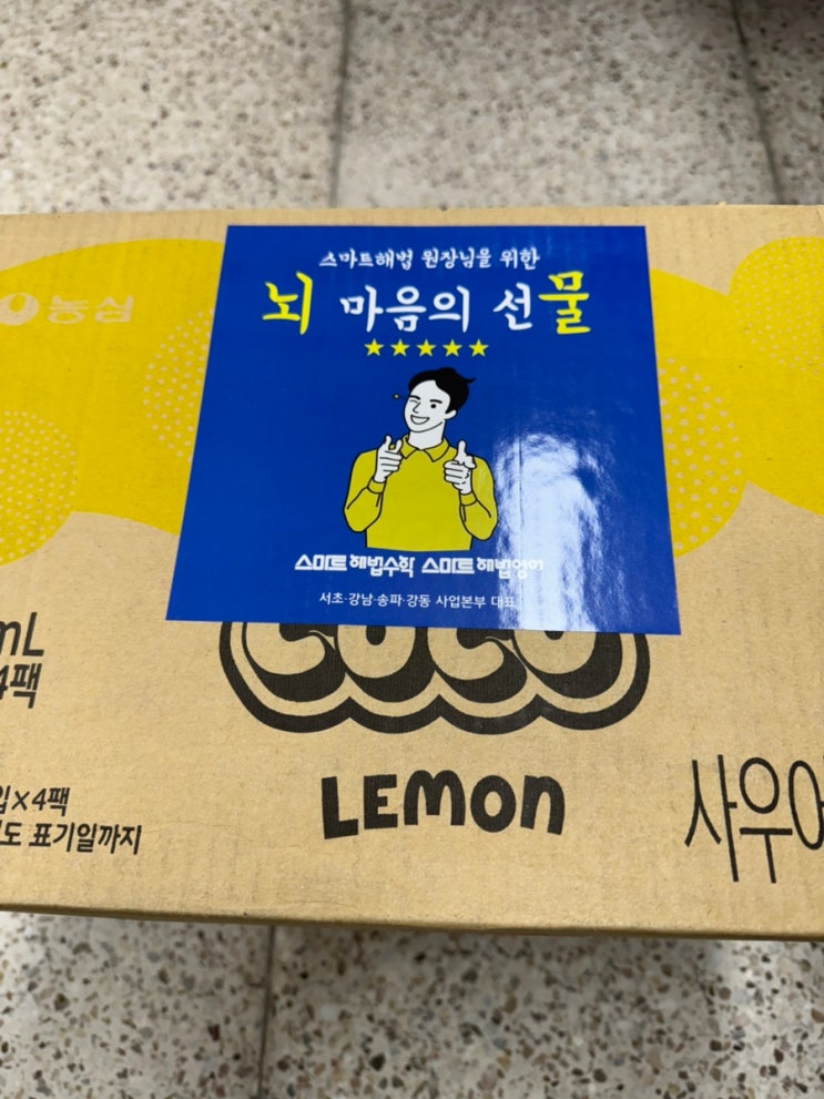 안녕하세요 스마트해법수학 위례스마트플레이스입니다 오늘은 스마트해법 서초강남송파강동지사에서 진행하는 “스마트해법 원장님을 위한 뇌 마음의 선물 이벤트”에 참여하게 되어 간단히 학원 소식도 함께 전해보려고 합니다. 최근 학기 초라 학원이 정말 바쁜 시기인데요. 그 와중에 아이들과 함께 작은 간식 이벤트도 진행했습니다. 이번에 도착한 선물은 츄파춥스 사워코코 레몬 음료입니다. 아이들이 정말 좋아하는 간식이라 박스를 열자마자 학원이 잠깐 들썩였네요 수업을 열심히 마친 아이들에게 작은 간식으로 나눠주었는데요. “선생님 이거 맛있어요!” “상큼하다!” 하면서 즐겁게 마시는 모습이 너무 귀여웠습니다....... <img src="https://blogthumb.pstatic.net/MjAyNjAzMDlfMjYy/MDAxNzczMDY1NDQyMjU5.UGHLtiBbyxlf7qZdu-IU_yUgNoYMcmK84JOcXi9veJog.TocBSFHwrh8j1yH_PWbM1mICm_uNop1maGZtJod7NlAg.JPEG/IMG%A3%DF6505.jpg?type=s3" />
