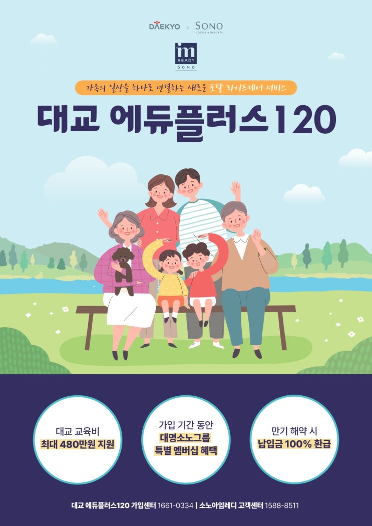 안녕하세요 눈높이 서초교육국입니다:) 오늘은 '대교 에듀플러스120' 에 대해 소개해드리려고 합니다. 대교 에듀플러스120은 교육 + 라이프케어를 묶은 멤버십 서비스입니다. 대교 에듀플러스120이란? '대교 에듀플러스 120' 은 대교에서 운영하는 교육 지원형 멤버십 서비스로, 아이 교육비 부담을 줄이면서 가족 전체가 사용할 수 있는 다양한 혜택을 함께 제공하는 상품이에요. ✔ 대교 교육 서비스 ✔ 소노그룹 멤버십 혜택 ✔ 만기 환급 구조 이 세 가지가 핵심 포인트입니다! 혜택1) 최대 480만 원 교육비 지원 첫번째 혜택은 교육비 최대 480만 원을 지원해준다는 것입니다. 월 4만 원 × 30회 × 4구좌로, 즉, 아이 학....... <img src="https://blogthumb.pstatic.net/MjAyNjAxMjNfMTEx/MDAxNzY5MTUwNTk1MjUx.vG_scS9hPDMPcHnae5OVFLVN1dB_d1xNvNQTODCxqxAg.GqpW1AWNuuAQhnlDcBUYDwTC15WFGvjw5yVWy-ElazYg.JPEG/%B4%EB%B1%B3_%BF%A1%B5%E0%C7%C3%B7%AF%BD%BA120_%C0%FC%B4%DC%C1%F6_page-0001.jpg?type=s3" />
