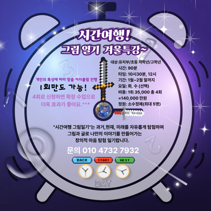 2026년 겨울특강 1탄, 2탄 수업이 따끈~따끈~ 나왔답니다! 예비초 친구들에게 가장 중요하고 대부분 학원에서 매년 겨울방학만 되면 빠지지 않는~ 겨울특강 단골 주제!! 1탄 그림일기를 준비해보았답니다.^^ 그런데 제목이 좀 색다르죠? * 시간여행 그림일기?! 아마 처음 보고 들어보실거에요~^^ 아이들에게 진정한 교육을 하고 싶고 생각하는 마음에서 고민해서 끝에 행복한 그림정원만의 색다른 일기 아이디어를 용기내어 만들어 보았답니다!^^* 단순 그림일기 수업이 아니에요. 아이가 '나'를 이해하고 표현하는 감정 성장 그림일기 프로그램이에요~! 솔직히 그림일기, 아이들 너무 힘들어해요~ 이미 유치원에서도 집에서도 학원에....... <img src="https://blogthumb.pstatic.net/MjAyNTEyMzFfMTU0/MDAxNzY3MTI4NzgzMDMx.MzGbtYFVoCuDOjEzjI0FkKCFesV_MlJG9-RMZf-Hui4g.CgNV7ZAiKRsD-udPSwyBAwT3f4SNS_i8rOPNoo350O8g.PNG/%BB%E7%BA%BB_-%B8%B6%C0%BD_%C5%BD%C7%E8_%BD%C3%B0%A3%BF%A9%C7%E0_%B1%D7%B8%B2%C0%CF%B1%E2_%B0%DC%BF%EF%C6%AF%B0%AD_z.png?type=s3" />