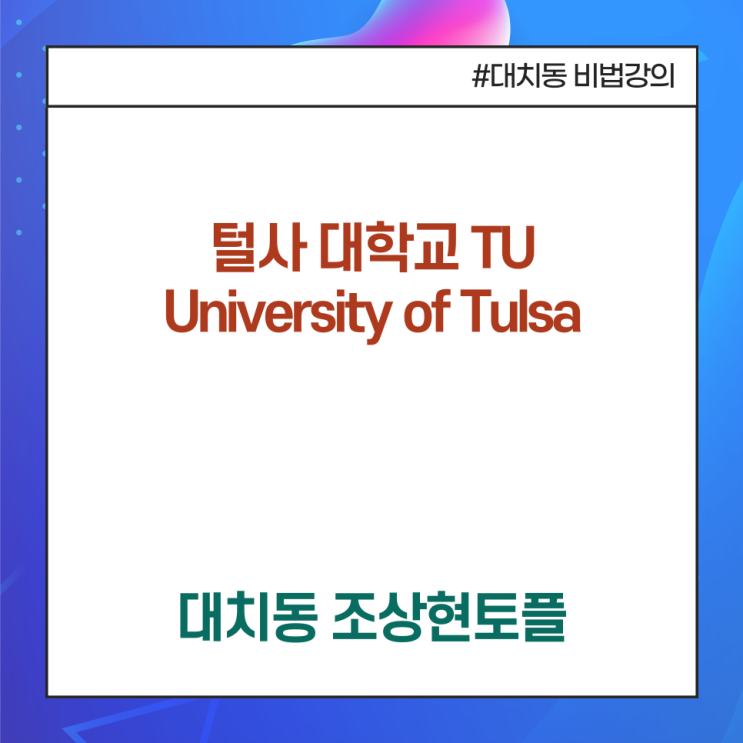[털사 대학교 TU, University of Tulsa] 미국 오클라호마주 털사(Tulsa) 위치, 순위 털사대 QS 세계대학순위 1001-1200위 1. 털사 대학교 University of Tulsa 세계대학순위 털사 대학교는 미국 최고의 사립 대학 중 하나입니다. 2026년 QS 세계 대학 순위에서 1001-1200위에 올랐습니다. 2023년 U.S. News & World Report가 발표한 미국 대학 순위에서 전국 규모의 대학 중 137위를 차지하였습니다. 2026 QS 세계대학 순위 1001-1200위 2025 QS 세계대학 순위 1001-1200위 2024 QS 세계대학 순위 1001-1200위 2023 QS 세계대학 순위 801-1000위 2. 털사 대학교 TU, University of Tulsa 소개 털사대학교는 미국 오클라호마주 털사(Tulsa)에....... <img src="https://blogthumb.pstatic.net/MjAyNTEyMjdfMTk5/MDAxNzY2Nzk0MTEwNDY0.qMY7WOjXuvVh6n1AT416lqi_-64-LYlctTK9s8jwI_0g.yM8UZdLetNCJUbPgY1-9eBdwUG6aGvng45m0V8Lvn9Yg.PNG/QS-Rankings-002.png?type=s3" />