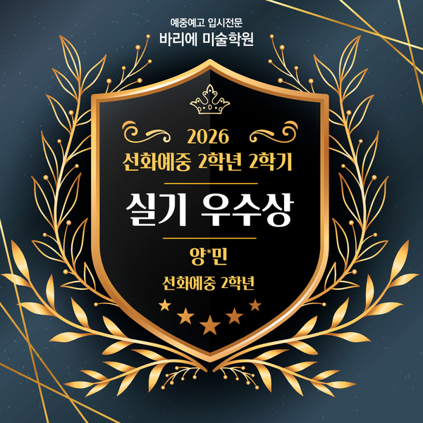 안녕하세요 그릴 줄 아는 기쁨이 뭔지 알게 지도하는 바리에 미술학원입니다. 오늘도 반가운 소식입니다. 선화예중 양유민 학생이 중 1학기 실기 우수상을 수상하였습니다. 진심으로 축하합니다 유민이는 선화예중 1학년 1학기부터 지금까지 네번의 학기 모두 실기 우수상을 수상해왔습니다. 이 꾸준함만으로도 얼마나 성실한 학생인지 느껴집니다. 유민이가 이렇게 좋은 결과를 이어올 수 있었던 데에는 뛰어난 감각도 분명 있지만, 무엇보다 “정말 잘하고 싶다”는 마음과 그에 맞는 노력이 있었기 때문이라고 생각합니다. 항상 연구하고, 고민하고, 어제보다 더 나아지려는 태도를 잃지 않는 유민이. 그 진지한 자세가 작품에도 그....... <img src="https://blogthumb.pstatic.net/MjAyNjAyMTZfMjg2/MDAxNzcxMTk0Mzg4MzQy.eLqf6U2BAUZwoX-0QHqCRWOH66wLXQrunh4ctb_h-LQg.ad0JOECZkfoqfEizqk4TqgFJ5LvoQaVVDfYdpi6s7hgg.PNG/%BE%E7%C0%AF%B9%CE_%BC%B1%C8%AD%BF%B9%C1%DF_2%C7%D0%B3%E2_%BD%C7%B1%E2%BF%EC%BC%F6%BB%F3_%B9%D9%B8%AE%BF%A1_%B9%CC%BC%FA%C7%D0%BF%F8.png?type=s3" />