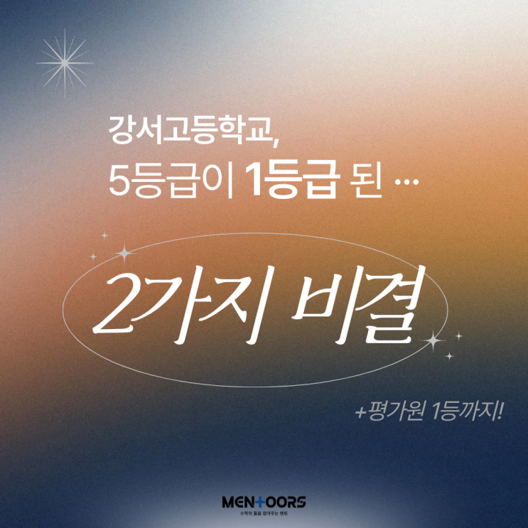 강서고등학교 학생 여러분, 혹시 지금 이런 마음을 갖고 있지 않나요? "고난이도 문제까지도 열심히 공부했는데 성적이 좀처럼 변하지 않는다?" "내신이 많이 아쉽다." 여러분과 똑같은 아이가 있었습니다. 열심히 한 만큼 적절한 시점에 좋은 점수로 보상받으면 정말 좋겠지만, 생각보다 잘 나오지 않는 성적..! 유독 힘들었던 학생이 있었습니다. 처음, 이 학생은 강서고 수학 내신이 5등급이었습니다. 오랜 시간 지루한 노력을 버티고 버텼으며, 고2 후반부터 1등급이 나오기 시작했습니다. 평가원 모의고사도 고3 때부터 모든 등급이 1등급으로 고정되었습니다. 처음에는 저희 멘툴스 수학학원도 순탄치 않았습니다. 아....... <img src="https://blogthumb.pstatic.net/MjAyNjAyMDdfMjg0/MDAxNzcwMzk2NjExNTA4.tt3Wwlm-qpaoYjTYr-ApDDCo8CrLn_Wtvn4VtfDavdAg.6J-K6qVYqe_LmSQb-W9JXM-njQHH4xQJHS6g8IjF4b4g.PNG/%B0%AD%BC%AD%B0%ED%B5%EE%C7%D0%B1%B31.png?type=s3" />