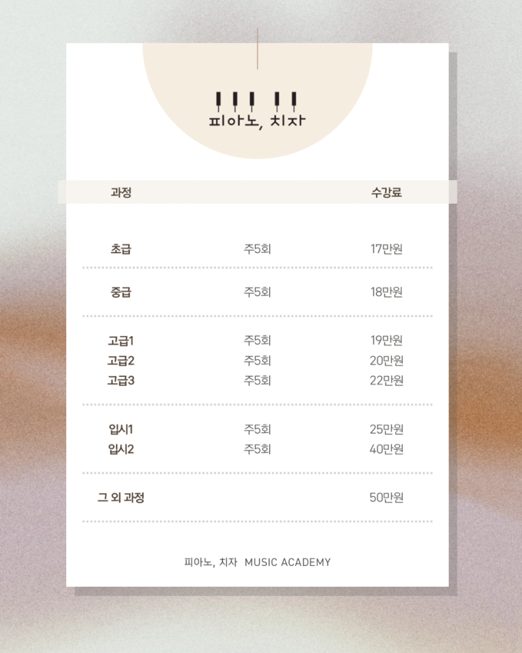 피아노, 치자 학원 수강료 게시표 입니다. <img src="https://blogthumb.pstatic.net/MjAyNjAyMTlfNDIg/MDAxNzcxNTA2NzQ0MTc5.RLDGunXgMcdCkjhpYDC0DlT3rKuJl1nrGV-s5BkrfYog.kvNCW6h6UY9C-04_FBlDgqDrvvdNe5Z4RTHbgR8ivyAg.PNG/%BA%A3%C0%CC%C1%F6%C5%E6_%B9%CC%B4%CF%B8%D6%C7%D1_%BC%F6%B0%AD%B7%E1_%B8%DE%B4%BA_%C0%CE%BD%BA%C5%B8%B1%D7%B7%A5_%B0%D4%BD%C3%B9%B0.png?type=s3" />