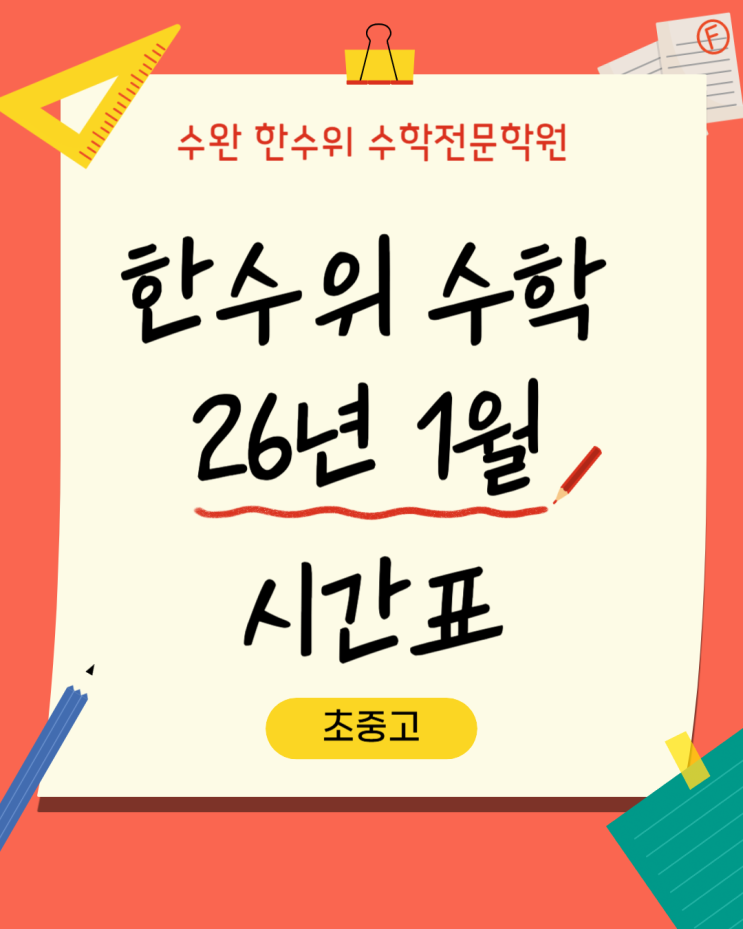 수완 지구 수학 학원 한수위 초등 중등 고등 2026년 1월 개강 시간표 안내