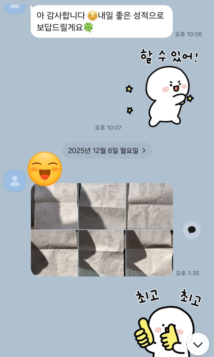 안녕하세요 분당 정자동 수학학원 수학자신감입니다. 초4부터 다닌 분당중2 여학생은 이 말을 자주합니다. 어려워요. 모르겠어요 초등학교때는 최상위S를 어려워하였지만 기본만 할 수 없기에 시켰습니다. 초등과정을 쉬운 책만하고 중등과정으로 넘어가면 갑자기 벌어진 난이도에 더 힘들어집니다. 초등심화가 안되면 중등기본을 하여도 어렵게 느낍니다. 중1-1과정을 어려워하여 반년이상 오래 걸렸습니다. 중1-2는 중학교와서 처음으로 시험을 보기에 열심히 하였습니다 중간고사에서는 80점이상 기말고사에서는 90점이상을 받았습니다. 겨울방학동안 수업시간보다 일찍와서 공부하고 있는 어여쁜 중2여학생은 이제는 모른다는 말보다 스스로....... <img src="https://blogthumb.pstatic.net/MjAyNjAyMDhfMTMg/MDAxNzcwNTMyNjM0Mzk1.f-uV-w9LfM7OTjB05eyjS0PnmxTYcuZsjNC6tczjIakg.l3YTZVDpxKIgKGIplbQ6YRbYrFlOHTlqYbyOmttBLyYg.JPEG/900%A3%DF1770532632801.jpg?type=s3" />