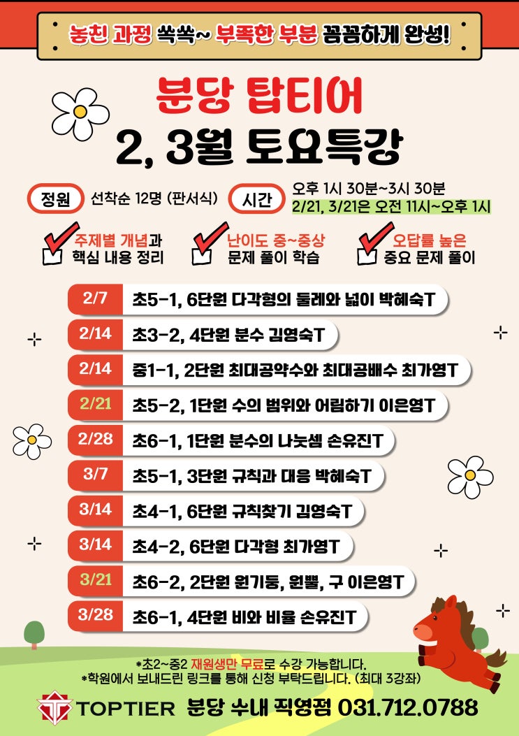 분당수학학원 탑티어 2~3월 토요 무료 특강