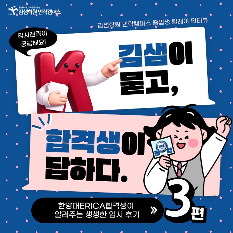 [졸업생릴레이인터뷰]김샘이 묻고, 한양대ERICA 합격생이 답하다!