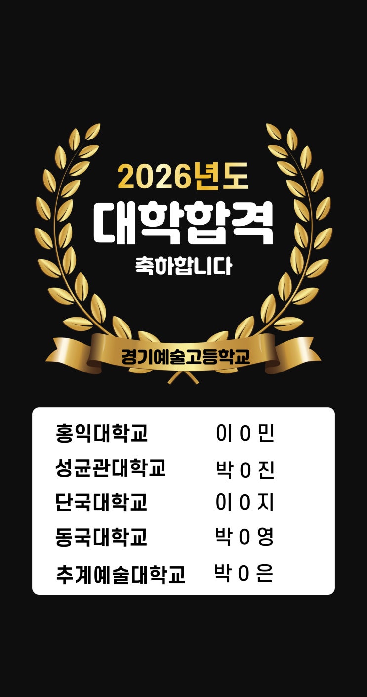 부천,인천연기학원 지역 독보적인 존재감 현재진행형 입시교육드림팀 「인히어연기학원」 매년 부천,인천연기학원 지역 NO.1 합격률! 압도적인 합격률(비교불가)!!! 인히어는 매년 증명하고 있습니다!!! 인히어 ‘2020프로젝트’ 중앙대 / 동국대 / 홍익대 / 서경대 / 동덕여대 등 압도적인 합격률로 '부천&인천 CHAMPION' 인히어 ‘2021프로젝트’ 동국대2명 / 단국대 / 서울예대 / 서경대 / 경희대2명 명지대2명 / 한세대2명 / 동덕여대 / 성신여대 등 압도적인 합격률로 '부천&인천 CHAMPION' 인히어 ‘2022프로젝트’ 중앙대 / 서울예대6명(수석포함) / 건국대 / 인천대 경희대2명 / 동덕여대5명(실기우수장학생....... <img src="https://blogthumb.pstatic.net/MjAyNjAyMTRfMTg5/MDAxNzcxMDU4ODI0MDc5.LGxpgJToiRdykpsYYALecPOoWossTPlqtXD7Wbs8us0g.gpMyHIA5rE-3HvJE05J2OSWHrqs0zovKeS-aLg-4njAg.JPEG/2027%C7%D0%B3%E2%B5%B5_%C0%D4%BD%C3%B9%DD_%B0%B3%B0%AD.jpg?type=s3" />
