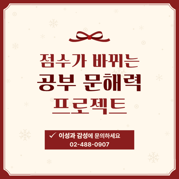 안녕하세요, 학부모님들. 길었던 겨울방학도 이제 한 달도 채 남지 않았습니다. 특히 2월은 짧고, 또 구정 연휴까지 있어서 아이들이 공부에 집중할 수 있는 시간이 생각보다 많지 않지요. 시간은 없고 무엇을 시켜야할지 모르겠을 때, 딱 하나 집중하면 좋을 이성과 감성 국어학원의 공부 문해력 프로젝트를 소개합니다. 문해력은 단순히 국어 성적을 올리는 힘이 아니라, 모든 과목의 ‘기초 체력’이 됩니다. 글을 읽고 이해하는 능력이 부족하면 수학 문제도, 과학 개념도, 제대로 소화할 수 없기 때문에 성적이 오를 수 없습니다. 공부 문해력반 안내 공부문해력반 수업의 커리큘럼은 다음 사진과 같습니다. 단순 강의가 아닌 아이의 학....... <img src="https://blogthumb.pstatic.net/MjAyNjAxMzBfNzkg/MDAxNzY5NzQxMzgxMTE5.MWZ6rn7hrCF54aWUlMRDx7obghbtAQhgqj8Xlk94wPgg.3iT50VJdhPwprDb7tByyhVKzQUY_2K4Xdxo0Wdt0Rtsg.PNG/1.png?type=s3" />