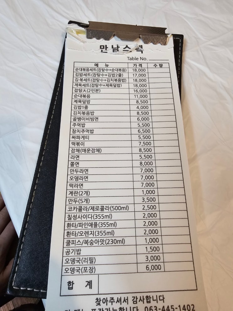 군산 만남스넥 메뉴판 및 제육덮밥, 매운잡채 추천~!!!! 맛집