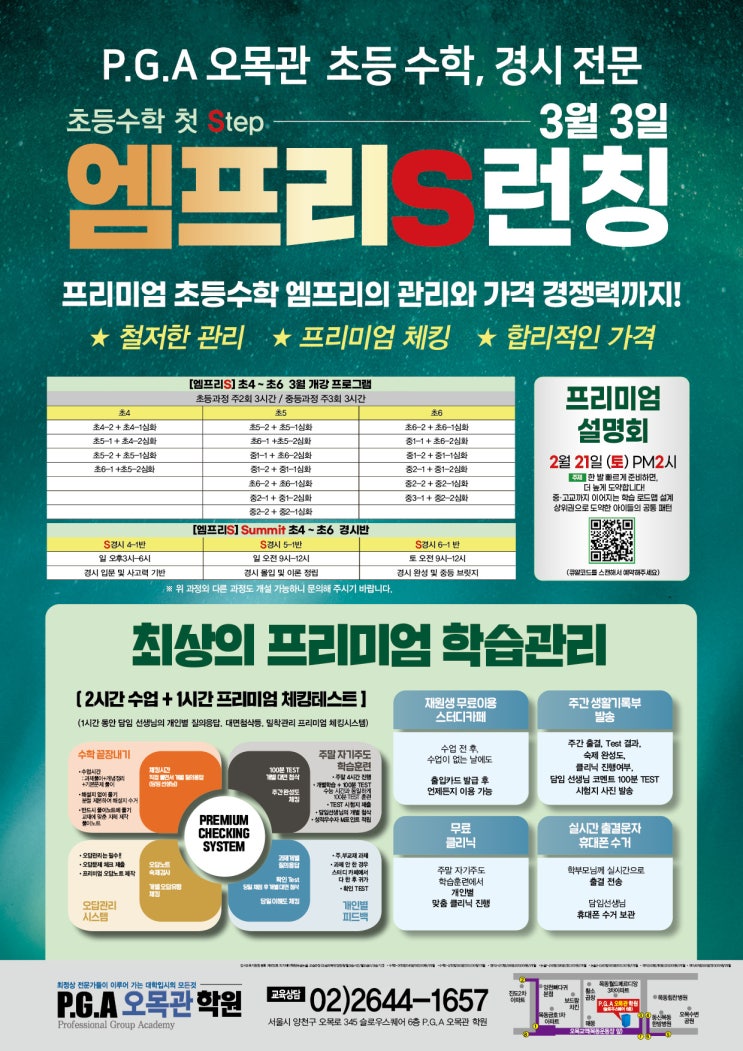[목동초등수학] PGA오목관 초등수학 전문 '엠프리S' 런칭! 3월3일 개강!!