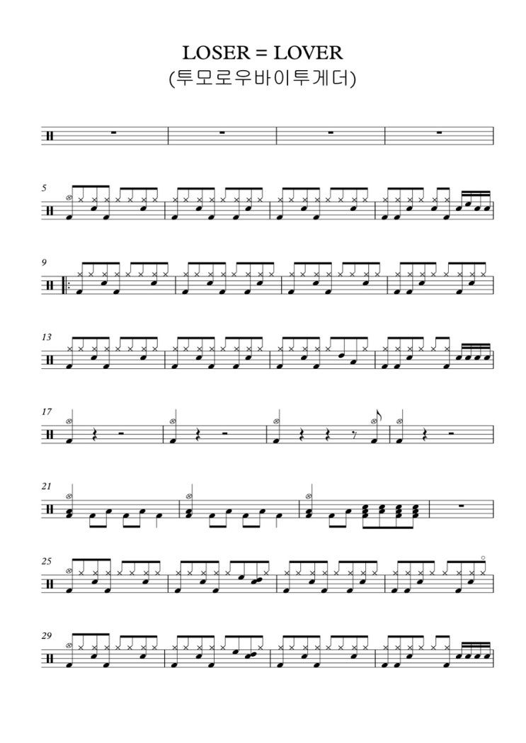 TxT loser=lover 드럼악보 입니다 이곡도 드럼으로 연습하기 좋은곡 같습니다 저희 구로메이저실용음악학원은 수강생이 원하는 모든곡을 직접 원장님이 정확히 카피해서 악보로 제작 수업때 활용하고 있습니다~! 이런곡을 드럼으로 한번 쳐보고싶다~ 생각만 하지마시고 언제든 저희메이저실용음악학원에 문의해주세요! #구로드럼학원 #구로실용음악학원 #구로동드럼학원 #구로기타학원 #신도림드럼학원 #성인드럼레슨 #개봉드럼학원 #개봉동실용음악학원 #광명드럼학원 #철산동드럼학원 #광명실용음악학원 #신도림실용음악학원 #신도림작곡학원 #고척동드럼학원 #드럼학원 #신도림기타학원 #가산드럼학원 #구로작곡학원 #구로보컬학원 #구로....... <img src="https://blogthumb.pstatic.net/MjAyNjAyMjVfMTU2/MDAxNzcxOTk0NTgxMDI5.zeO1pwZxvLQorgX8ytXKcLCteaPokifiJpmU_7478Xgg.3j2CL-qKqatqT_54CrD-anvSjLRJIwBEyDNTiIxouLQg.JPEG/IMG%A3%DF2336.JPG?type=s3" />