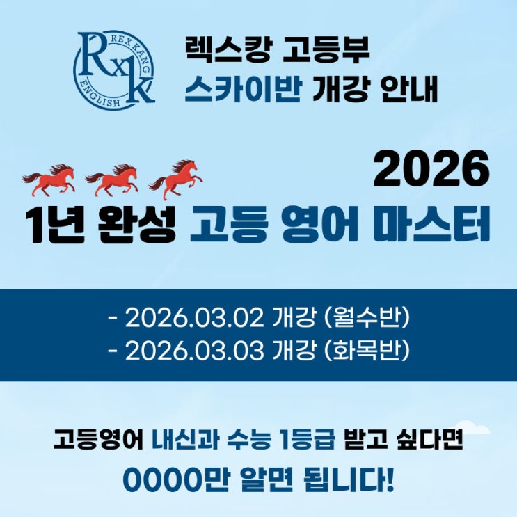 "고등내신, 수능 모두 1등급 목표이신 분만 보세요"- 고등스카이반 개강 - 렉스캉영어학원