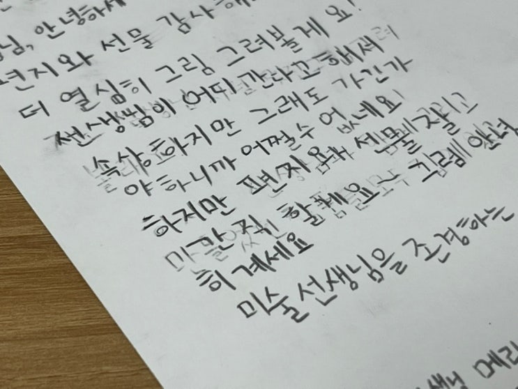 2021년 12월 -2025년 12월 매일매일 교습소와 함께 했던 만 4년의 시간 4년 전 블로그에 창업일기 폴더를 만들고 오픈 준비과정을 포스팅으로 하나하나 작성하며 설레는 마음으로 미술선생님이 될 준비를 했지요. 그렇게 오픈하여 초보 딱지를 조금씩 뗄 무렵, 스스로 느끼는 부족함을 메꾸고자 대학원 진학을 결심했고 2025년에는 한 해 동안 교습소 운영과 학업과 병행을 했어요. 가벼운 마음으로 진학을 결정한 것은 아니었지만 운영과 학업을 병행하며 여러 가지 면에서 한계를 많이 느껴 아쉽고도 어려운 결정을 하게 되었답니다. 마음을 정하고 정리가 본격적으로 결정되면서 학부모님과 아이들에게 이별 소식을 전하기가 정말 어려웠답니....... <img src="https://blogthumb.pstatic.net/MjAyNjAxMDNfMTEx/MDAxNzY3NDMzNTQ5ODYy.ANg2jO_4L-WUtMnqsNubgqNSe7JcLCfKQcXni4sqBNgg.FIdSJDK6qE-Bcs2fZ8bMBfRIF68xzNOI41AFAFVPr_4g.JPEG/IMG%A3%DF5812.jpg?type=s3" />