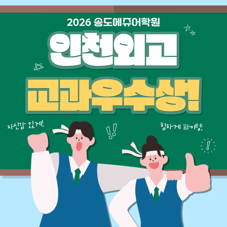 안녕하세요, 외고 일본어 내신 NO.1 송도에쥬어학원입니다:) 1년 동안 열심히 공부해 온 결과 많은 수강생들이 교과우수상을 수상했습니다^^ 인천외고 1학년 교과우수상 인천외고 1학년 교과우수상은 1등급(5등급제)만 8등까지인데 그 중 5명이 수상했습니다^^ 인천외고 2학년 교과우수상 인천외고 2학년 교과우수상도 2등급(9등급제)까지 8등이고 그 중 5명이 수상했습니다^^ 전교 내신을 휩쓸고 있는 송도에쥬어학원 수강생들 너무 자랑스럽습니다☺️ 학생들 모두모두 수고 많으셨습니다:) 인천외고 일본어 내신은 송도에쥬어학원! 방학 특강도 현재 진행 중이니 많은 관심 부탁드립니다♡ ▼ 외고 내신 담당 노미나 선생님 송도에쥬어학원 일....... <img src="https://blogthumb.pstatic.net/MjAyNjAxMTlfMTI3/MDAxNzY4ODA3NTIxMTIx.g98lvvlhXdo3zgTWx4nxMXRbq0cvkHtwl0jUMrqbORwg.6zLXvvGvOBDW6bx6GbjyWzfC6Twc_ivKB5PTPfXup0kg.PNG/%C1%A6%B8%F1%C0%BB_%C0%D4%B7%C2%C7%D8%C1%D6%BC%BC%BF%E4._%284%29.png?type=s3" />