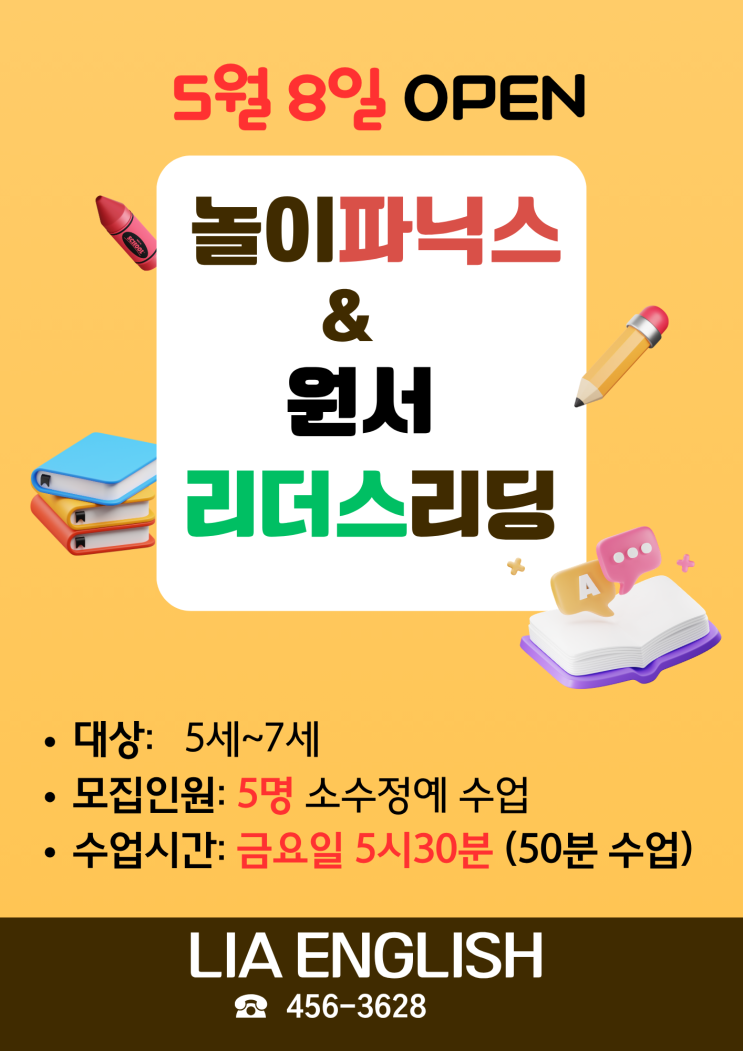 [공지] 리아영어 신규 클래스 오픈! 놀이 파닉스와 원서 리딩의 완벽한 만남