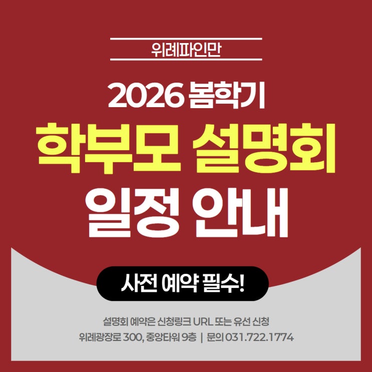 [위례파인만] 2026 봄학기 학부모 설명회 일정 안내