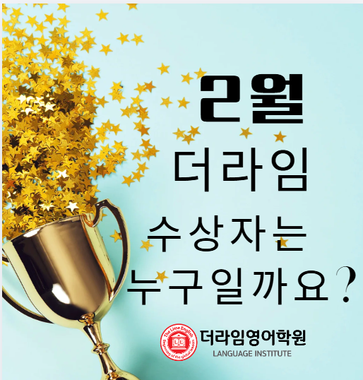 2월, 노력의 시간이 빛난 아이들 더라임영어학원 2월 수상자 발표 2월 한 달 동안 더라임영어학원에서는 아이들의 작은 성장 하나하나를 놓치지 않고 지켜보았습니다. 매일의 수업, 반복되는 영어 읽기와 쓰기, 녹음 과제와 숙제까지. 눈에 띄는 결과만이 아니라 과정 속에서 보여준 태도와 성실함, 그리고 도전하려는 마음이 모여 이번 2월 수상자가 탄생했습니다. 이번 2월에는 무비더빙 수상자, 녹음왕, 우수학생, 다독왕, 북리포트 수상자, 그리고 한 달 동안 과제를 성실히 수행한 숙제왕까지 다양한 영역에서 아이들의 노력이 골고루 빛났습니다. 영어는 단기간에 완성되는 과목이 아닌 만큼, 저희는 결과보다 ‘지속’과 ‘태도....... <img src="https://blogthumb.pstatic.net/MjAyNjAyMDlfMTI0/MDAxNzcwNjMxMjkyMzgx.4ByW6CDEoOKiil1QHz4KIW6l47ltHWA9GUau_DvB1IQg.jhaWhpclhiqzT1A3A2HaZslHzbMiDCg6H3AJ7LrLjzog.PNG/image.png?type=s3" />