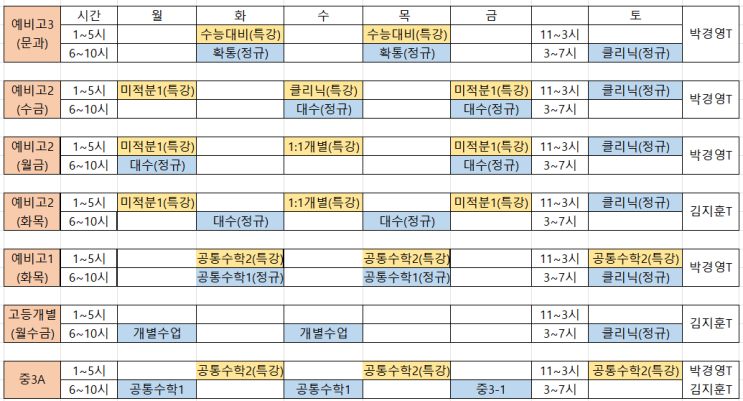 예비고1은 1월 둘째주부터. 예비고2,3학년은 1월부터 바로. 슈룹의 윈터스쿨이 시작됩니다. 정규수업은 그대로 유지되는 상태에서 오후 1~5시까지 다양한 특강과 자기주도 학습이 이루어집니다. 특강 신청시, 자습실은 아무 시간에나 무료로 이용가능하다는 점 참고해주시길 바랍니다. 예비고3의 '수능 대비 특강' 총15회 요일:화목 방학 동안 킬러 문제 제외한 기출문제 정복이 목표입니다. 2시간 수능전문 강사님의 판서 수업과 2시간 고등 원장님의 클리닉으로 이루어집니다. 정시나 수능 최저를 위한 최적의 수업을 약속드립니다. 예비고2의 '미적분1 특강' 총13회 요일:월수금 월금은 미적분1 진도 + 수요일은 클리닉 수....... <img src="https://blogthumb.pstatic.net/MjAyNTEyMTRfMTQ4/MDAxNzY1Njk2NDQyMjY4.wo_zfT1DNZvcgpV66oS41UY1x1xzbhgaXsTr2WrAsIQg.uQyGoDeAfmvHoWjSqhPkKthQsFebYzzRwD5wtFdCJ2kg.PNG/%B0%ED%B5%EE%C0%A9%C5%CD.png?type=s3" />
