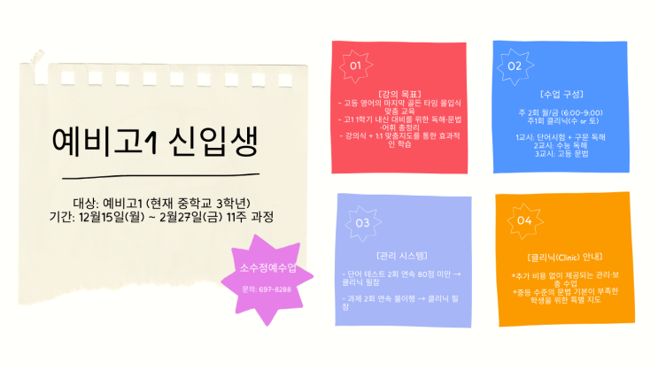 예비고1 11주 과정 신규생 모집