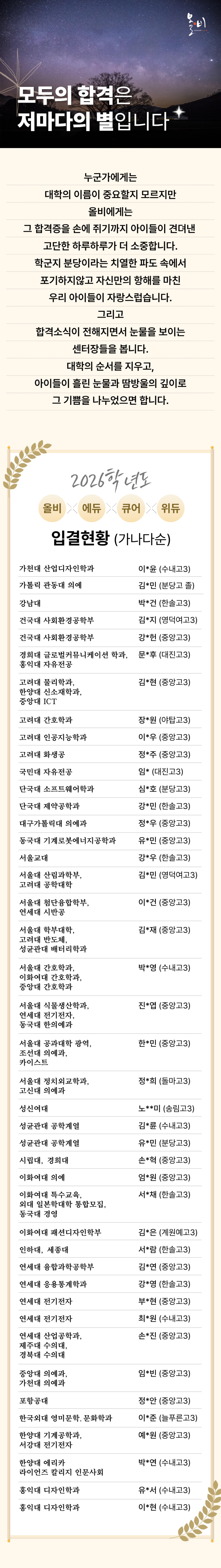 [올비수학 X 에듀 X 큐어 X 위듀 2026년 입결] 축하합니다!!!