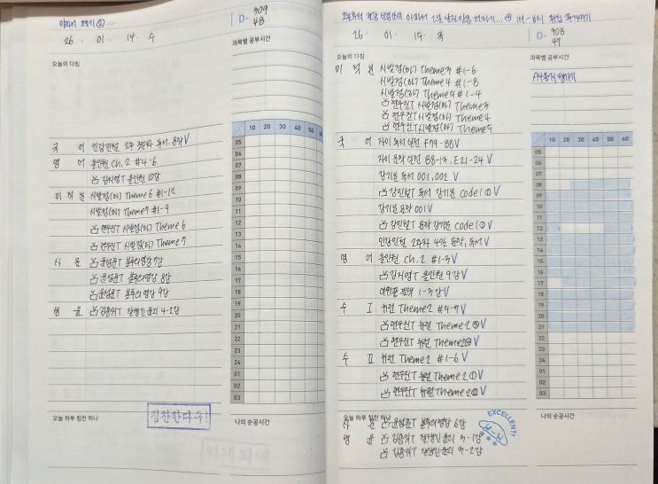 이라고 쓰고 우리 학생 자랑하기! 안녕하세요 여러분! 커넥츠프랩 평택합정점 수능관입니다 ^-^ 커넥츠 프랩에 입학하게 되면 평일 등원 시, 아침에 20분간 조회시간을 갖게 됩니다! 조회시간 동안에는 영단어 test, 영어 듣기 test 가 자율적으로 이루어지고, 나머지 시간에는 스터디플래너 작성을 하게 됩니다! 우리 재학생 중 너무 잘 쓴 친구가 있어 자랑과 안내를 함께 드립니다!! 플래너에 매우 꼼꼼하게 ① 과목 ② 공부량 ③ 달성 여부 ④ 공부시간 + 본인에게 하고 싶은 응원의 말과 격려의 말까지!!! 을 작성한 모습을 볼 수 있습니다 스터디플래너 작성이 처음이라 막막한 친구들, 혼자서 공부 계획 세우기 어려운 친구들 모두 주....... <img src="https://blogthumb.pstatic.net/MjAyNjAxMThfMTY3/MDAxNzY4NzA0Njk4MjI4.uwZ6gH28oeu_zDzbZyLgF_yvHwtWUIt8EZp_fQdzcpMg.6sr3B3F5kWYcIrf8zlTLDyqBWTM05rji4WAb6ySSpYYg.JPEG/KakaoTalk_20260118_114603407_02.jpg?type=s3" />