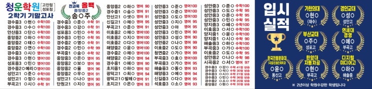 청운학원 2학기 기말고사 성적우수자 및 대학 우수 입학자 명단
