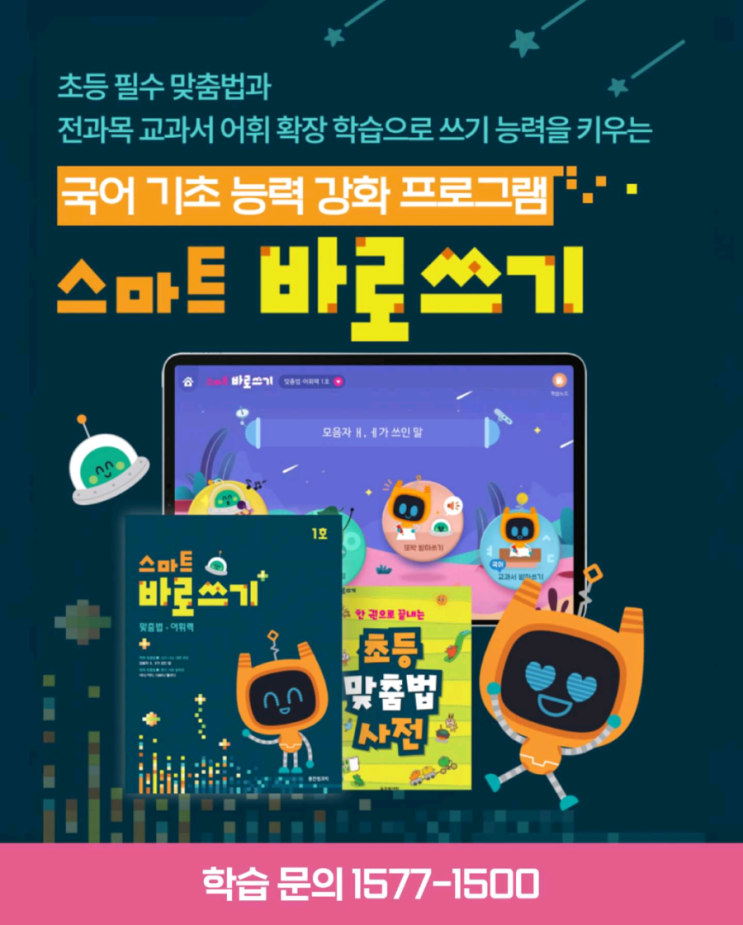 우리 아이 글쓰기, 지금 그대로 괜찮나요?✏️ 헷갈리는 맞춤법부터 서술형 글쓰기까지 한 번에 잡아주는 국어 기초 프로그램 <스마트 바로쓰기> 스마트 바로쓰기는 2단계 구성입니다! 1️⃣ 맞춤법·어휘력 단계 ✔ 바로 써먹는 ‘틀리지 않는 쓰기 습관’ ✔ 전 과목 학습에 필요한 개념어 확장 2️⃣ 문장·서술력 단계 ✔ 매주 짧은 글 3편 직접 작성 ✔ 문법을 기반으로 문장 정확도 강화 초등 글쓰기, 기초를 제대로 잡아주는 선택✨ <스마트 바로쓰기>로 시작하세요! ☎️ 교육 문의 010-7766-6547 #웅진씽크빅 #스마트글쓰기 #초등글쓰기 #웅진문산학원 #동문디이스트209동공부방 <img src="https://blogthumb.pstatic.net/MjAyNjAxMjJfMTAy/MDAxNzY5MDkxNDA0Nzc4.y4ZKKxEjMsWQs3eoZmPXXmGdwdilaZdAJC5q5hE2rAkg.7V1GFg6Ywxwd5GMpdNseZUC0kgi2Sky3LXkutU0eT88g.PNG/900%A3%DFDTjih79gQuh%A3%DF0.png?type=s3" />