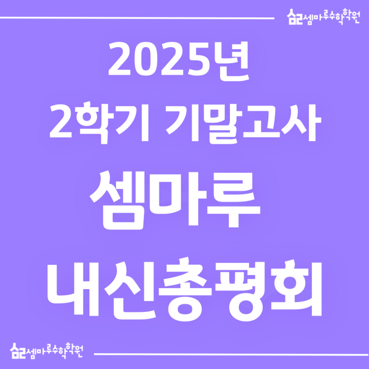 지난 2025년 마지막날, 셈마루 수학학원에서는 한 학기의 내신 결과를 정리하고 다음 학기를 설계하기 위한 내신 분석 총평회를 진행했습니다. 셈마루 선생님 모두 모여, 2025년 2학기 인근 중학교, 고등학교 지필고사를 낱낱이 분석하고, 이번 시험 준비과정과 결과를 되새기며, 다음 전략을 준비하는 시간입니다. 시험이 끝나면 셈마루의 강사진들은 다음 단계를 준비하는 분석의 시간으로 이어집니다. 그리고 선생님들의 공부는 그때부터 더욱 깊어집니다. 이번 내신 총평회는 단순히 “점수가 어땠다”를 공유하는 자리가 아니었습니다. 이번 시험이 왜 그렇게 출제되었는지, 아이들이 어디서 흔들렸고, 다음에는 무엇을 더 단단히 준비해야....... <img src="https://blogthumb.pstatic.net/MjAyNjAxMTNfMTg0/MDAxNzY4MjkyNjUyNTMy.yZkusYovmOEX7m6TlED7vhlVLEVhkWGHpMSrU5AioU8g.X8mIlDAjrhOvGA4C9cVtqlMzb86C263YgUfqwnuKNFMg.PNG/25_08-%BA%ED%B7%CE%B1%D7-%BD%E6%B3%D7%C0%CF-007_%281%29.png?type=s3" />