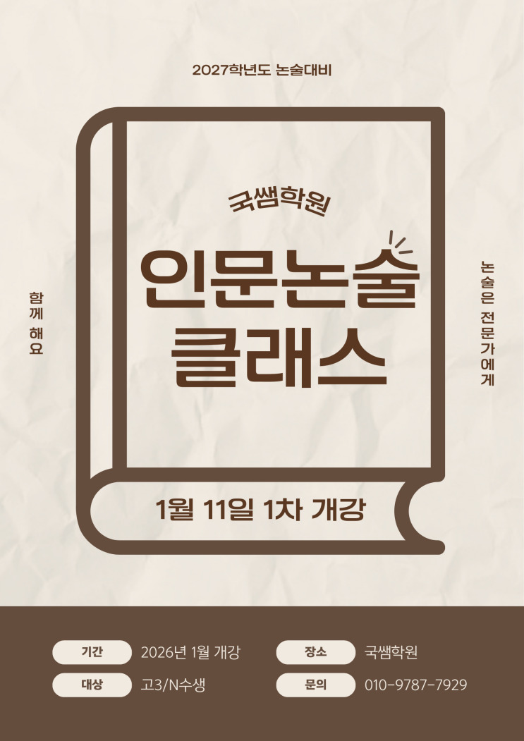 인문논술의 정석 국쌤학원에서 고3 인문논술 개강합니다!