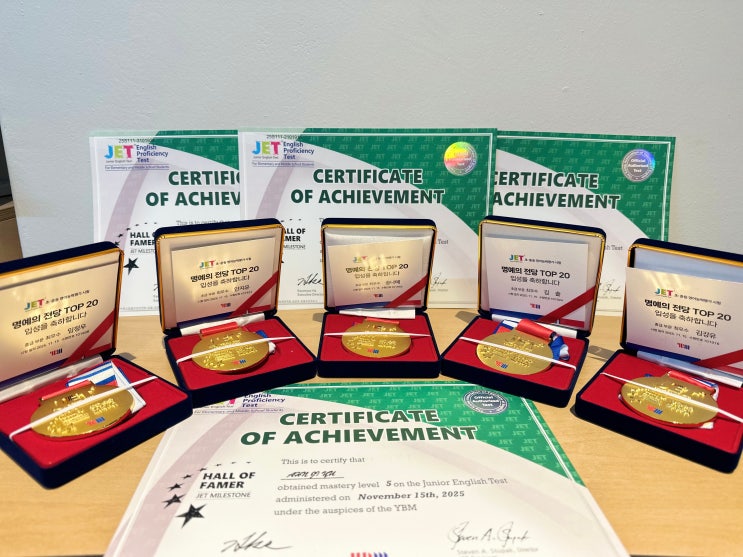 ------------------------------------------------------ YBM JET 시험은 실용 영어 중심의 평가를 통해 실제 의사소통 능력을 객관적이고 신뢰도 높게 측정하고, 학습자의 현재 실력과 앞으로의 학습 방향을 제시하는 데 목적이 있습니다. 비욘드 목감·장현 캠퍼스는 이러한 JET 시험의 평가 취지에 맞춰 매년 정기적으로 JET 시험을 진행하며, 아이들의 영어 성장을 점검하는 중요한 기준으로 삼고 있습니다. 그리고 2025년 11월, 목감·장현 캠퍼스에서 진행된 JET 시험도 성공적으로 치뤘습니다. ✅ 응시자 전원, 목표 급수 100% 합격 ✅ 각 급수별 고득점 최상위 20명에게만 수여되는 ‘명예의 전당’ 총 5명 수상 단 한 명의 예외 없....... <img src="https://blogthumb.pstatic.net/MjAyNTEyMTlfODkg/MDAxNzY2MTI1NzkxNjc0.EeCUUxsNta6wfdsOS1rTHvU6o-am1FkjAfcXcwvg8PYg.tmMf3osn1lOKvP8Br_fYyXzZH44hQRy59Q1idIi9EYgg.JPEG/KakaoTalk_20251217_175331717.jpg?type=s3" />