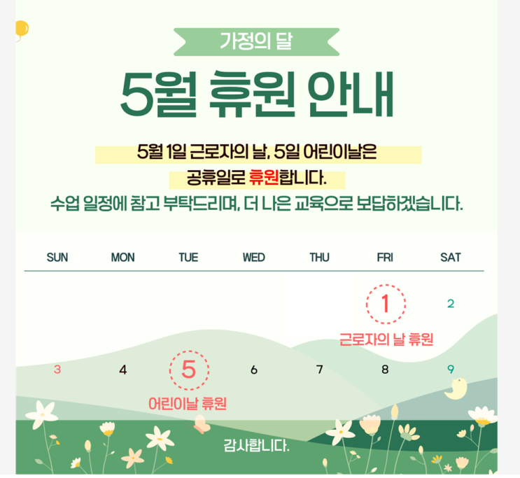 은계 더채움수학 5월 휴원 안내