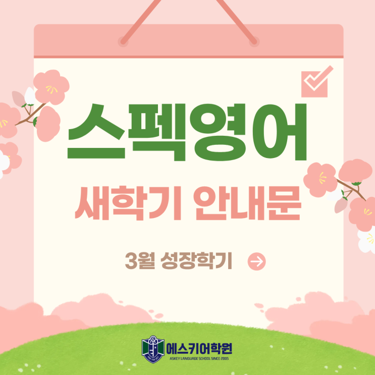 의왕초등영어학원 에스키어학원 2026년 3월 스펙영어 새학기 안내문