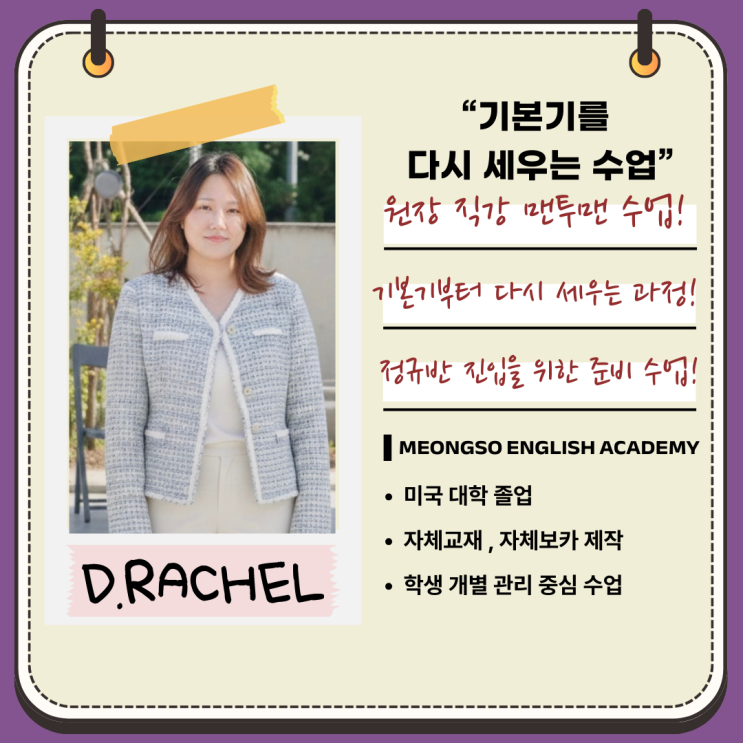기본기가 부족하거나 정규반 수업이 아직 어려운 아이들을 위해 원장이 직접 1:1로 지도하는 드림클래스를 운영하고 있습니다. 학원 커리큘럼에 맞춰 자체 에세이 교재와 보카 교재를 제작해 수업에 활용하고 있습니다. 수업–과제–복습이 자연스럽게 연결되도록 설계된 교재로 아이들의 실력 향상에 실질적인 도움을 주는 것을 목표로 합니다. 특히 보카 시험을 꾸준히 진행하며, 학생들의 어휘력을 체계적으로 관리하고 있습니다. 중·고등 내신 대비를 중심으로 시험에 필요한 개념과 반복 학습을 체계적으로 지도합니다. 자체 교재를 기반으로 기초부터 내신까지 연결하는 수업을 진행합니다. 파닉스부터 기초를 탄탄하게 잡아 주는 수업을 바....... <img src="https://blogthumb.pstatic.net/MjAyNjAxMjJfMTU3/MDAxNzY5MDA5NjY2OTQ2.f7fywrqITLrJfsjWKFFbVlGOuaO8pKT1wd1i-8TiDksg.dOHdv-g3X56r6x04TlC1BHNlrvP34kP3cR6SUZtR22gg.PNG/KakaoTalk_20260122_003305800.png?type=s3" />