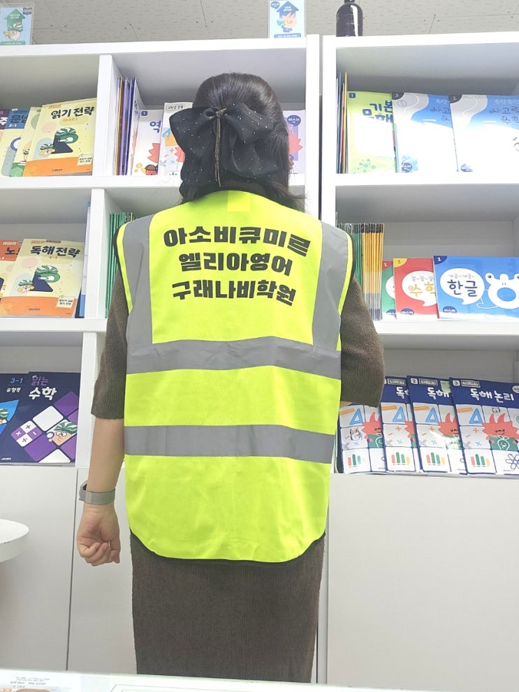 아소비큐미르 엘리아영어 구래나비학원 아소비큐미르 유치~초등6학년 수업 엘리아영어 유치~ 초등6학년 수업 만족하는 유치 초등전문학원입니다 도보픽업을 진행하면서 아이들이 안전하고 학부모님들께서 픽업은 조금 걱정이야~~ 안전하고 믿을 수 있는 학원이 있을까?? 생각해 보았을 때!? 어.머.나.!! 하고 안.전.조.끼.!! 학원 이름까지 있는 조끼를 입고 픽업을 진행하면 선생님 스스로도 조심성과 책임감을 가지면서 업무를 진행하게 되죠♡ 거기에 학원 홍보까지 ♡ 이렇게 괜찮을 수가 있나요♡ 아이들에게 눈.에.띄.는.선.생.님. 학부모님들어게 안.전.한.학.원. 나.는.야. 홍.보.요.정.♡ 픽업을 나가다 보면 안전이 제일 중....... <img src="https://blogthumb.pstatic.net/MjAyNjA0MjhfMjc1/MDAxNzc3MzE2MTUxODc2.Da-sqsEMR8IdMlFLKXtrvMu3CQqjrA_YNDXa1KuApU8g.5Cn6cU_29DcgQtLTWUZjuWXCjZcWj-rA_YMqbnc9QBkg.JPEG/900_1777316150601.jpg?type=s3" />