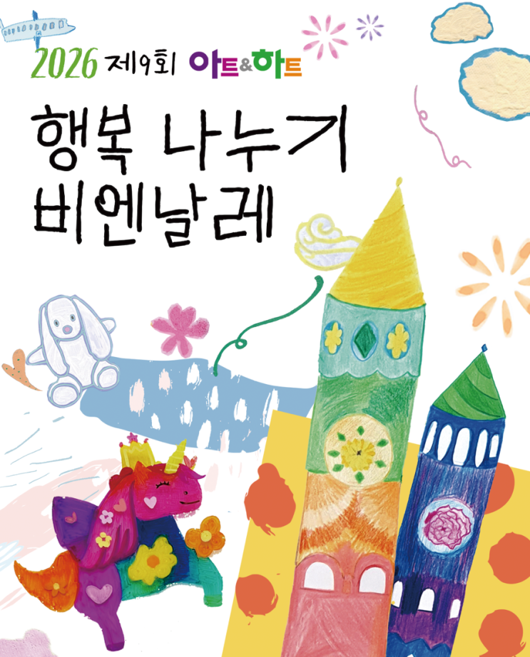 2026 아트앤하트 행복나누기 비엔날레 일정, 장소, 전시 안내 2008년 첫회를 시작으로 18년간 이어져 온 행복나누 기 비엔날레는, 아동 작가와 함께하는 미술 재능 기부 전시회에요. 전국 약 400여개 가맹 교육원의 아이들과 성인들이 제작한 작품 약 3,000점이 한 자리에 모이 며, 이 중 아동작가 작품 2,800여점이 전시의 중심을 이룹니다. 행복나누기 비엔날레는 아이들이 직접 작가가 되어 자 신의 작품을 미술관에 전시하고, 그 수익금이 전액 기부 되는 뜻 깊은 행사인데요. 올해 주제는 바로 '내가 가장 행복했던 날' 입니다. 행사명: 2026 제9회 아트앤하트 행복 나누기 비엔날레 주제: 내가 가장 행복했던 날 장소: 인사동 한....... <img src="https://blogthumb.pstatic.net/MjAyNjA0MjlfNDEg/MDAxNzc3NDY5Mjk1Mjc4.ADnZ0fBIwh_a8r5XF7s63kfyPr4KVX0XZLRO6G7Bb-0g.rLdcpjFaEwhbxcxhWVyu2duLz05Ixqf152xB-QVok2sg.PNG/IMG%A3%DF7188.PNG?type=s3" />