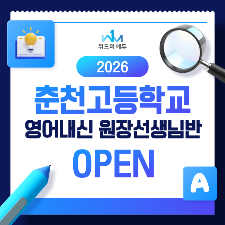 [춘천고 영어내신반 모집|학교 내신은 ‘방법’이 성적입니다] 안녕하세요, 위드미 에듀입니다. 저희 위드미에듀에서는, 3월부터 미리미리 내신대비를 위해 춘천고등학교 내신영어대비- 20년 경력의 원장선생님반을 오픈합니다! 춘천고 영어 내신은 “열심히 했는데 왜 틀리지?”가 자주 나오는 시험입니다. 이유는 간단해요. 해석만 해서는 점수가 안 나오는 구조이기 때문입니다. 춘천고 영어는 보통 ✅ 지문 변형(빈칸/순서/삽입/요지) ✅ 어법·어휘 정확성 ✅ 서술형(영작/문장완성) 실수 방지 이 3가지에서 성적이 갈립니다. 그래서 저희 춘천고 영어내신반은 “많이”가 아니라 "정확히 점수로 이어지는 공부"를 합니다. 고등학....... <img src="https://blogthumb.pstatic.net/MjAyNjAyMTRfNDYg/MDAxNzcxMDQ2OTcxMzg5.DyBxkkZ-lsKq00-XeiwpIT8xjQAn4bzM4Gg0FVvKMWUg.JCZnKcmyPuaIneyq8_NmtFTvdy7gvZwN42qoJPoc0d0g.PNG/2.png?type=s3" />